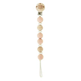 This stylish eco-friendly dummy chain keeps your little one's dummy from falling to the floor. They are made from 100% Food Grade Silicone and Sustainably Harvested Beechwood Timber secured by strong nylon cord.